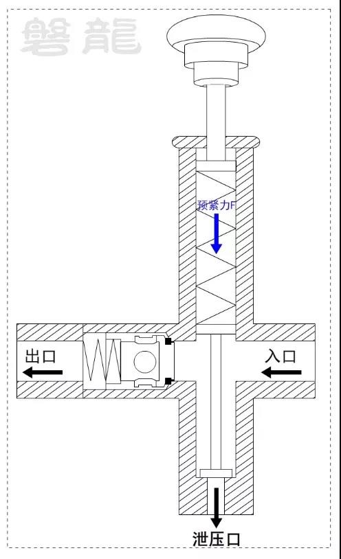 下圖是泄壓調壓閥原理簡(jiǎn)化示意圖,通過(guò)擰緊、擰松頂部的旋鈕,可調節彈簧的預緊力,以調節泄壓壓力值。